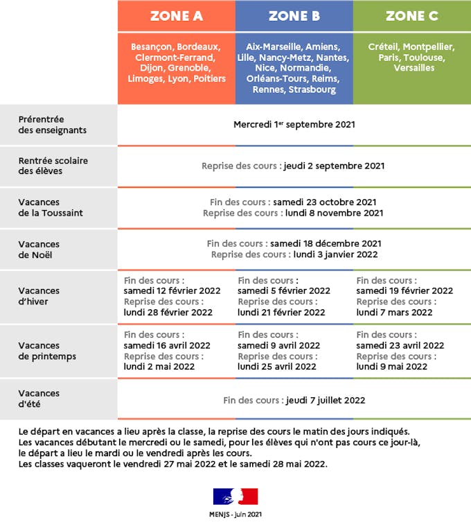 Calendrier Vacances Scolaires 2021 2022 Zone A Pratique Le Parisien Etudiant